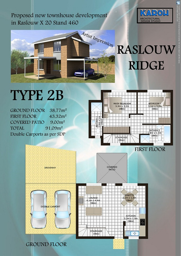 2 Bedroom, 2 Bathroom - 91.09m² - Single or Double Carport as per SDP